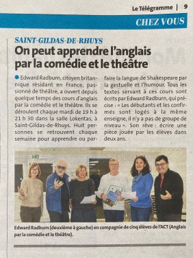 English Com’Eddy Theatre est aussi une association située à St Gildas de Rhuys et opère dans et autour du Golfe du Morbihan.
